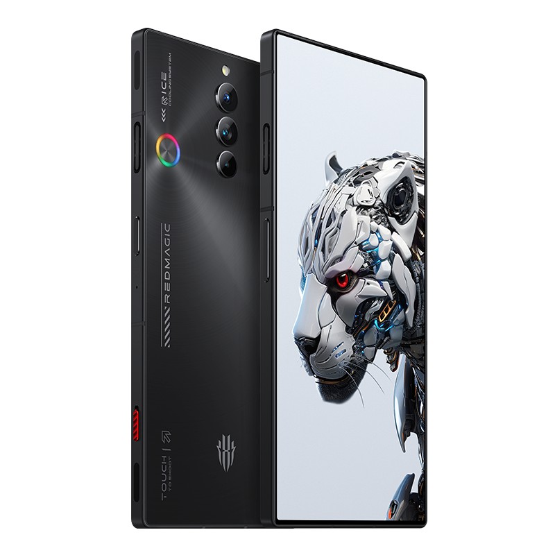 Обновление смартфона Red Magic 8 Pro+. Помимо добавления буквы S в названии, есть несколько улучшений. Стекло на чёрной задней панели теперь не матовое, а гладкое. Появился платиновый цвет. А ещё у смартфона Red Magic 8S Pro Plus даже в версии с непрозрачным корпусом есть светодиодное кольцо в месте расположения вентилятора, которое, сливаясь с корпусом, фактически незаметно при выключенной подсветке.