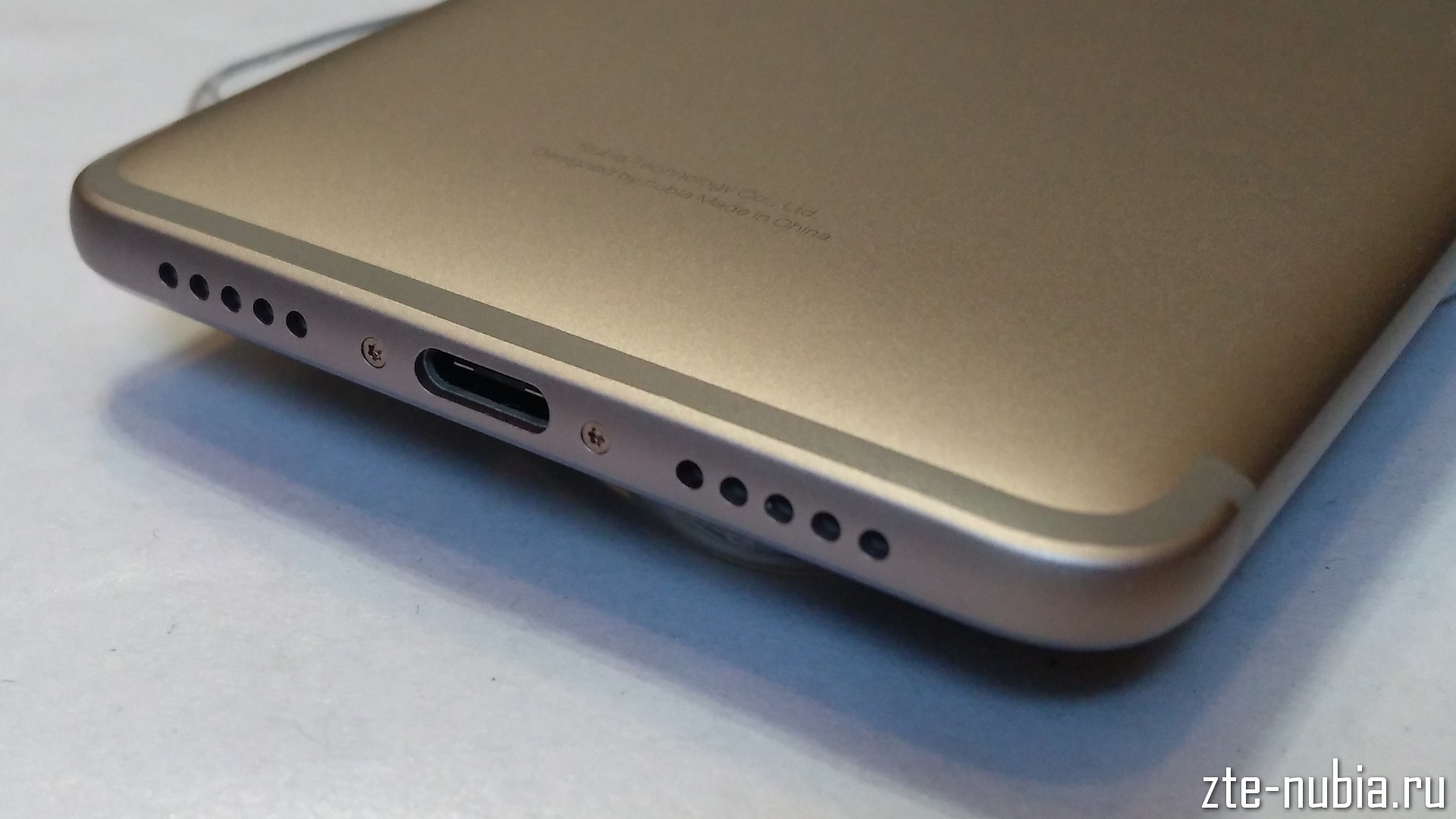 На нижнем торце одна решётка для динамика, а вторая лишь для симметрии, под ней находится разговорный микрофон. Тут же разъём USB Type-C, но версии 2.0 (в чем отличие от версии 3.1 можно найти Интернете). По сути, этот разъём имеет те же возможности, что и microUSB, только является симметричным. Реализована технология OTG (можно подключать внешние устройства, фотоаппараты, флешки через переходники и т.д.). Работу не проверял!