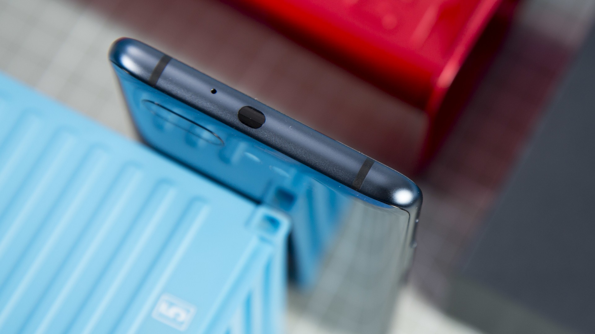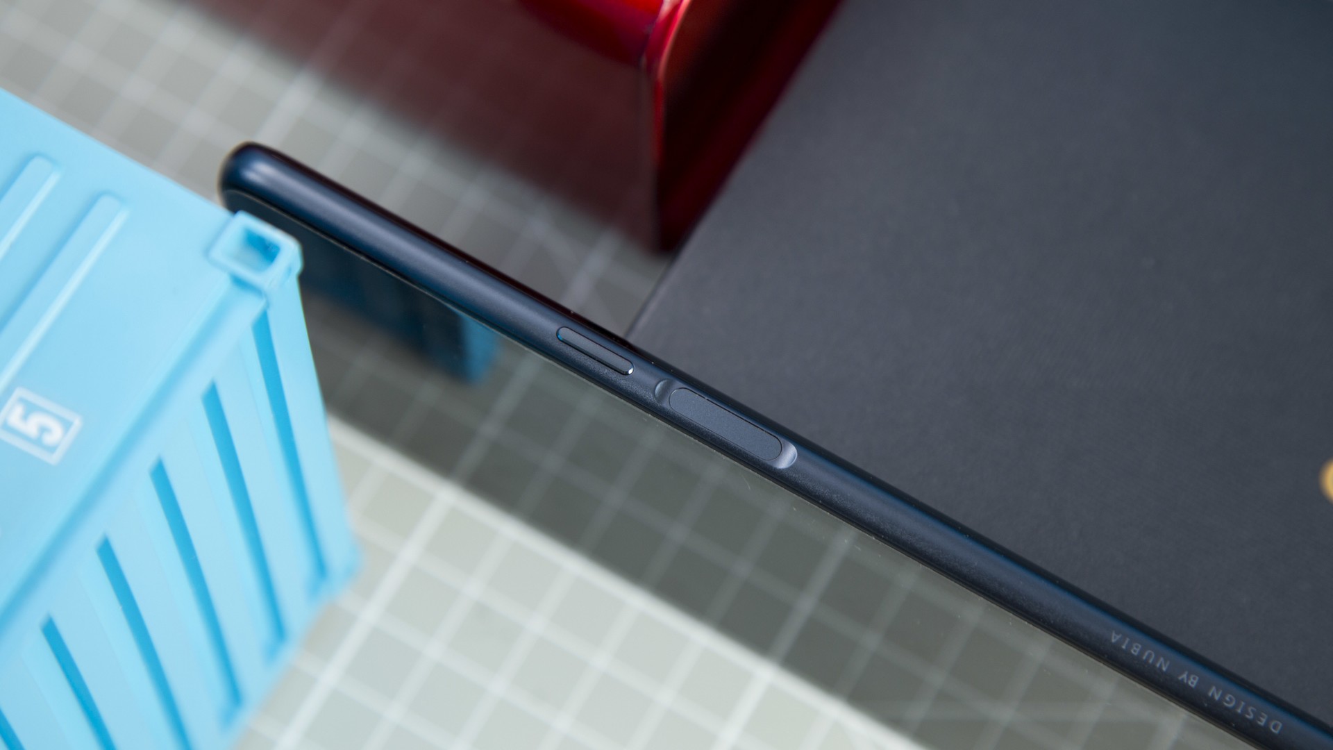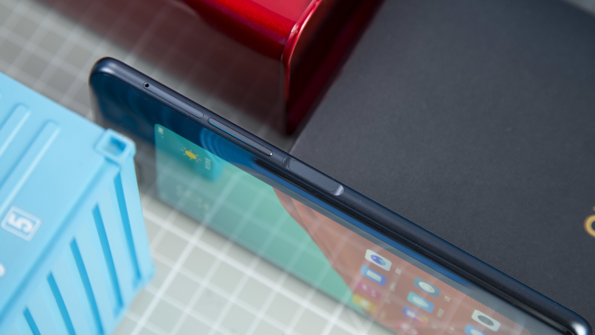 На левой стороне выдвижной лоток для сим-карт, клавиша громкости и один из двух сканеров отпечатков пальцев. На правой стороне клавиша включения и второй сканер отпечатка пальца.